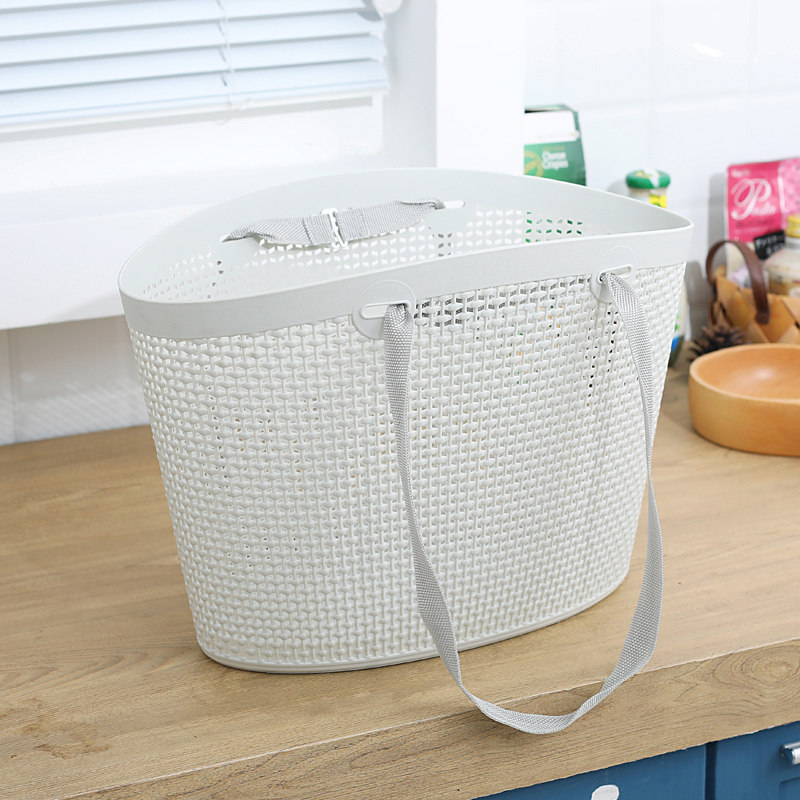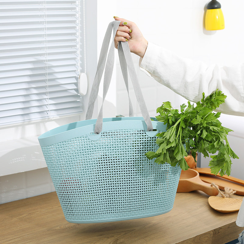 Hu Jie soft plastic portable basket bath storage basket home buy food carved multi-functional miscellaneous blue shopping blue hollow
