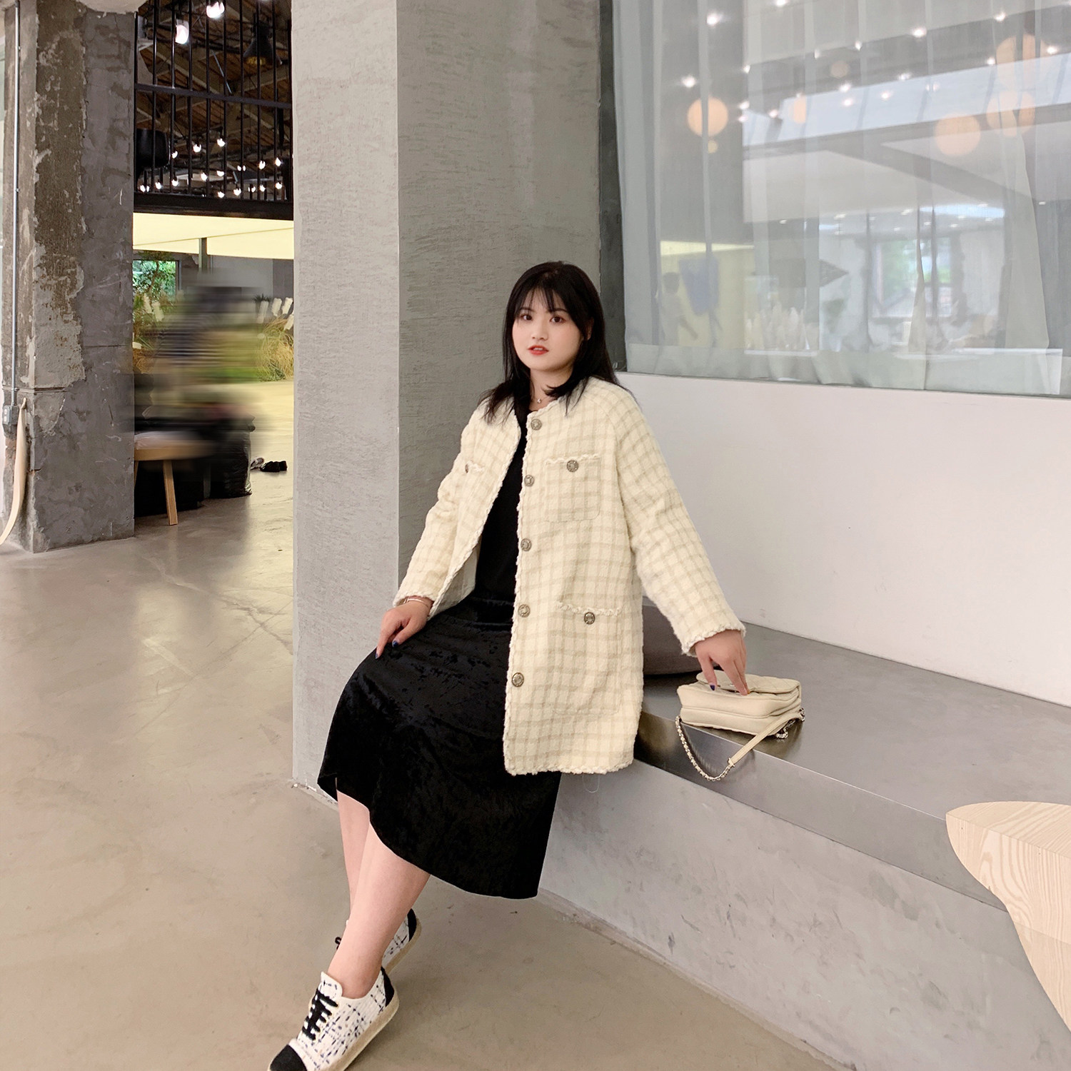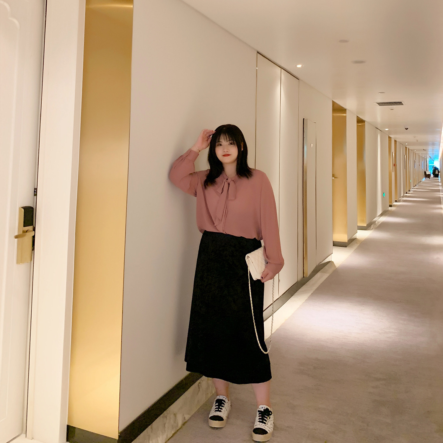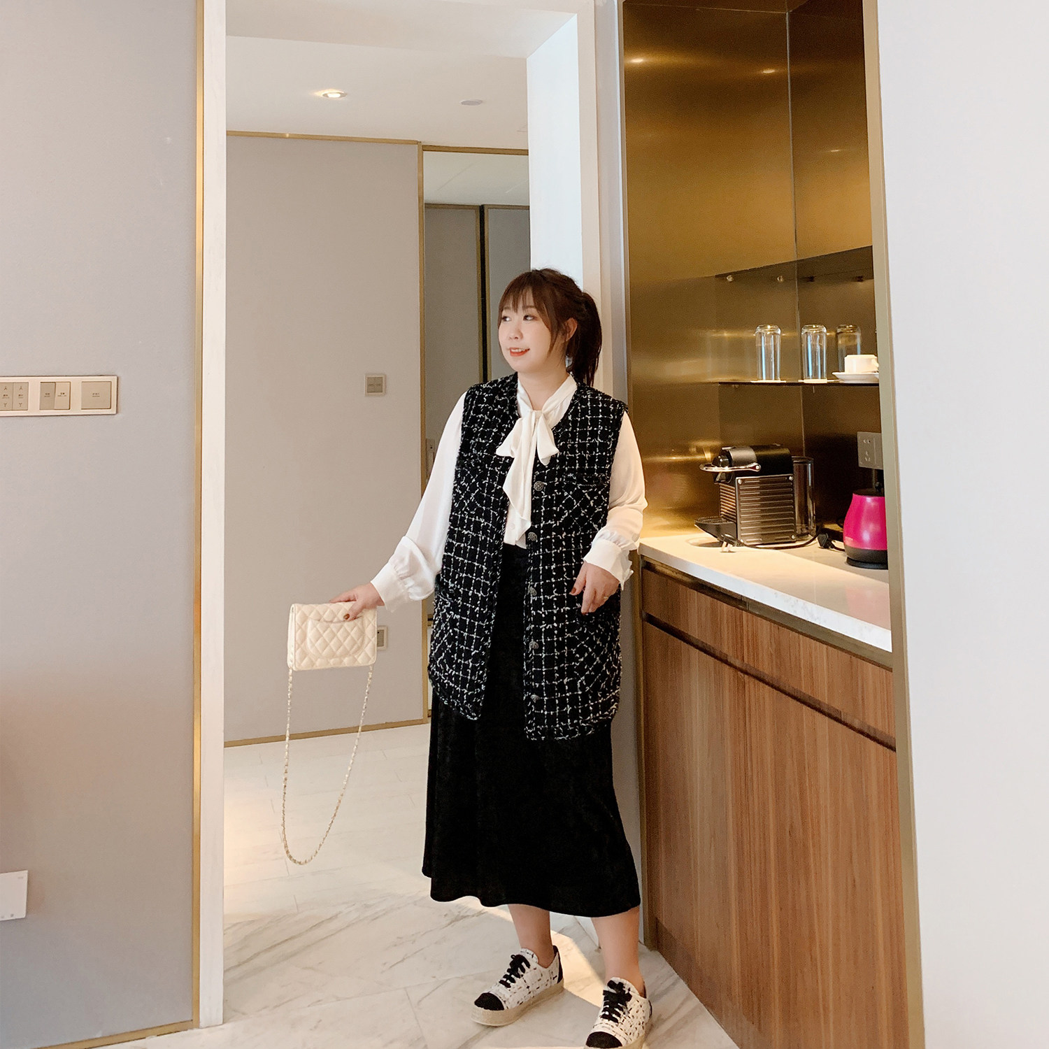 ALIN Custom large size women's clothing velvet half body dress Fat mm Fall new 2019 High waist display slim black A-word dress