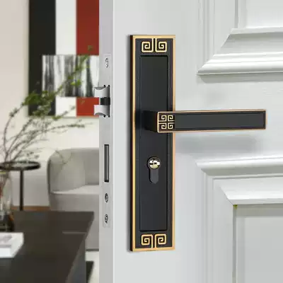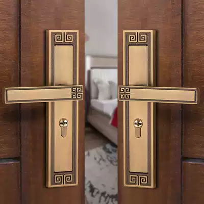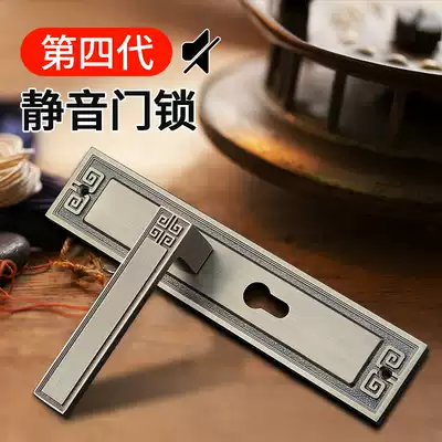 New Chinese door lock antique indoor two-door bedroom household Universal Magnetic mute solid wood door handle