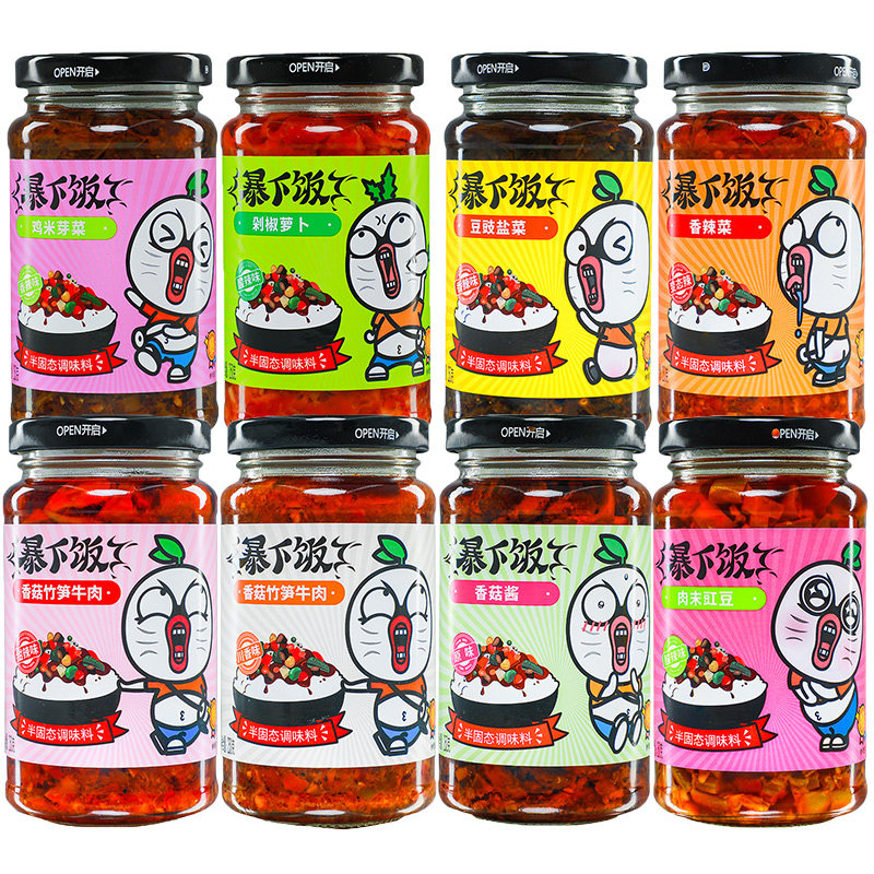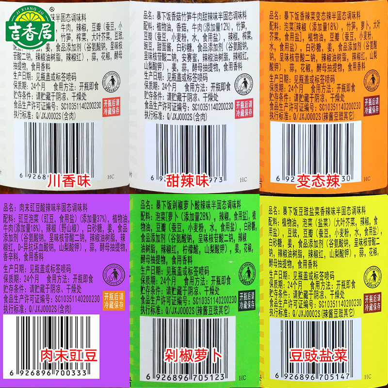 Chop pepper radish 3 bottles Sichuan Incense 3 bottles Sweet and spicy 3 bottles Sweet and spicy 1 bottle Sichuan Incense 2 bottles Sweet and spicy 2 bottles Sichuan Incense 1 bottle Minced cowpea 3 bottles chicken rice sprouts 3 bottles minced fried kimchi 3 bottles