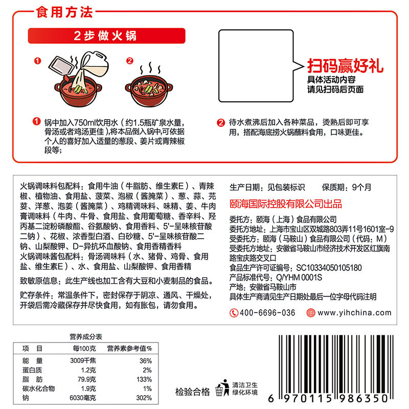 Intense Aroma Bull Oil 150g Mellow Butter 150g Red Curry Base Stock 150g Tomato Base Stock 200g * 3 Bags Fungus Soup Base Stock 110g Clear Broth Base Stock 110g Spicy