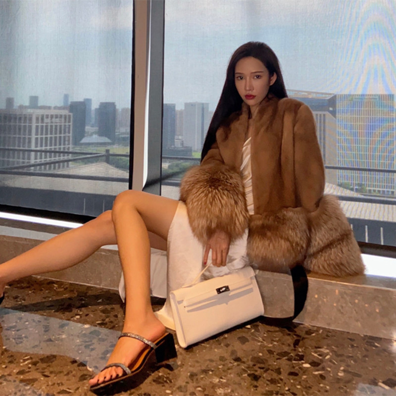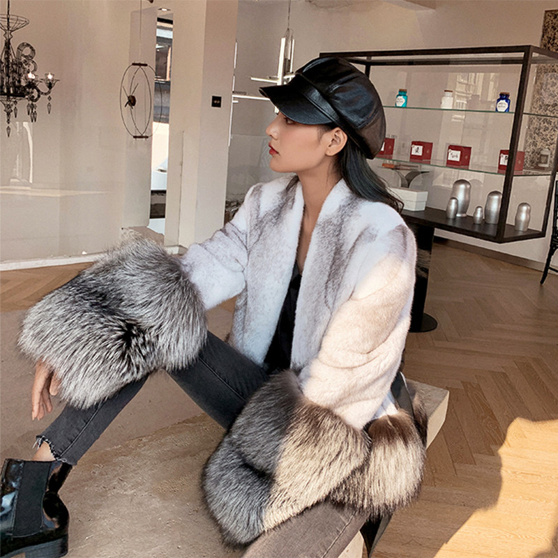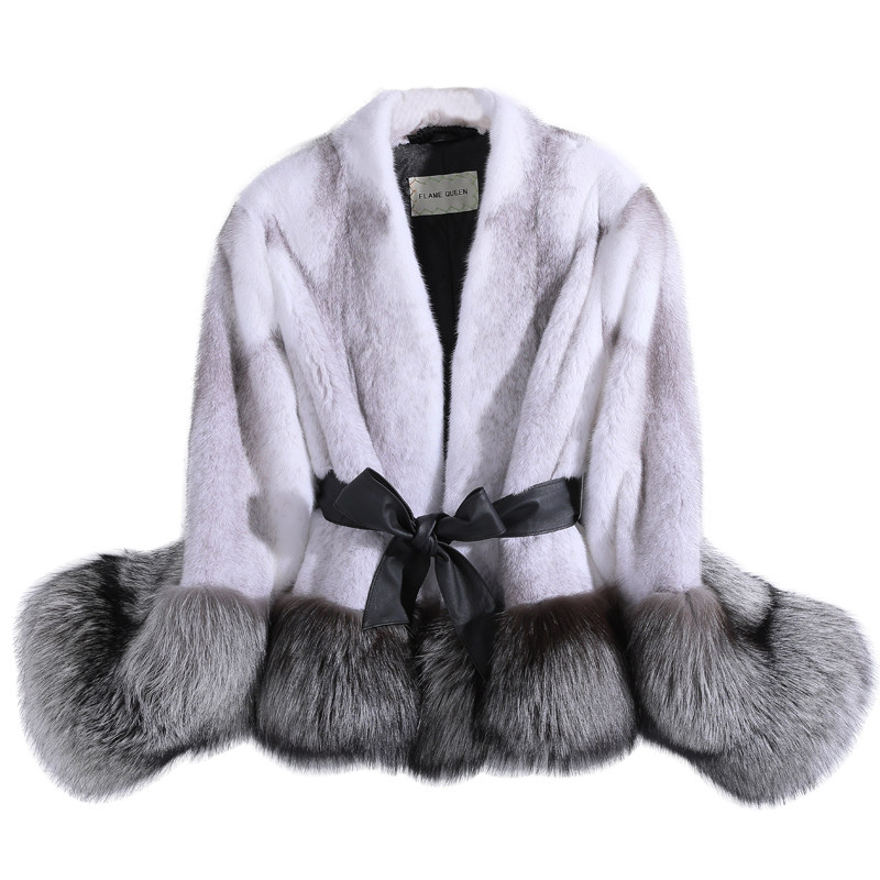 Flame Queen 2022 New Imported Water Mink Fur Coats Whole Mink Fox Fur V Collar Young Fur Coats Women's Winter