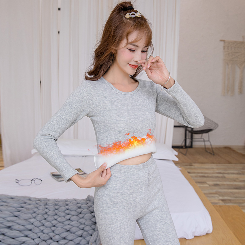 Heating Clothes Women Thickening Plus Suede Autumn Winter Tight Fit A Set Of Autumn Clothes Sanitary Pants Suit Students Beauty Body Closeout Sanitary Clothing Pants