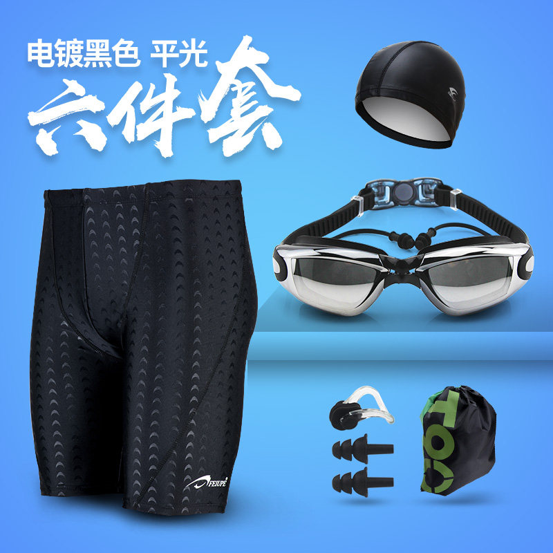 Speed Dry Swimming Trunks Swimming Goggles Swimming Cap Earplug Nose Clip Swimsuit Bag Six Pieces Waterproof Anti-Fog Myopia Swimming Glasses Male Swimsuit
