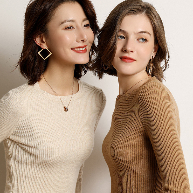 Round neckline sweater woman to be slim and low collar long sleeve autumn winter shorts tight close-up waistcoat head beating underhand jersey