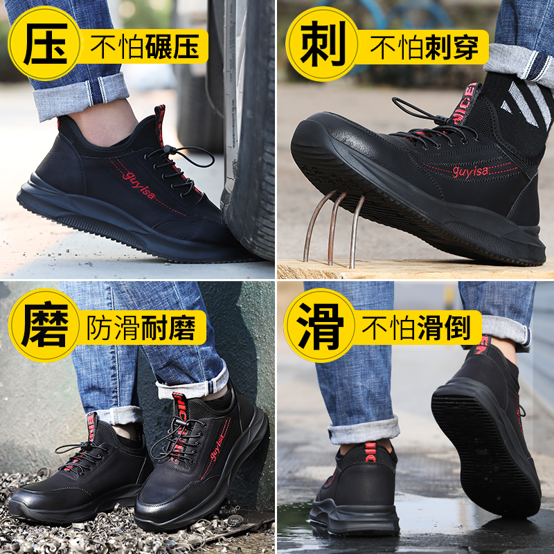 Labor insurance shoes men's winter warm plus velvet lightweight steel head anti-smashing anti-piercing construction site old protection steel plate safety shoes