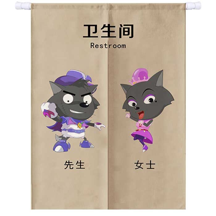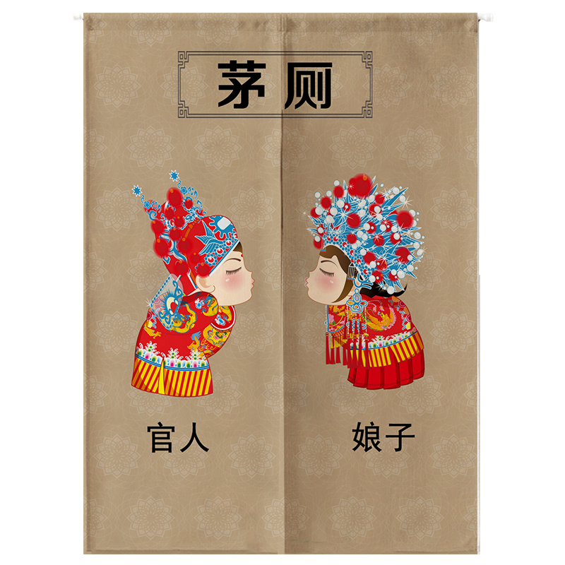 Customized punch-free toilet curtain cut curtain cloth decoration of new Chinese personalized toilet semi-cut curtain