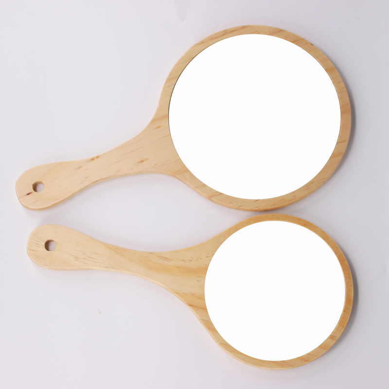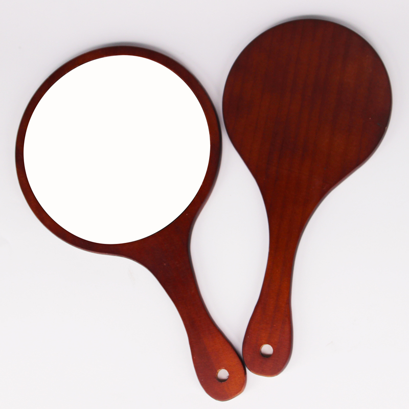 Large and small round wooden frame wooden handle mirror handle dressing log mirror beauty makeup mirror wood mirror
