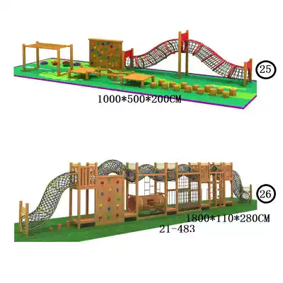 Kindergarten outdoor huanghuali wooden slide indoor and outdoor wooden huanghuali climbing net drilling combination slide