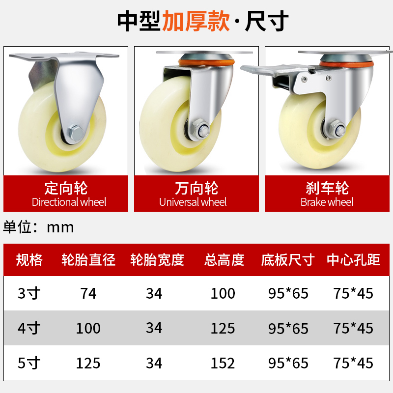 3 inch directional wheel (Normal) 3 inch universal wheel (Normal) 3 inch brake wheel(Normal) 4 inch directional wheel(normal) 4 inch universal wheel(normal) 4 inch brake wheel(Normal)