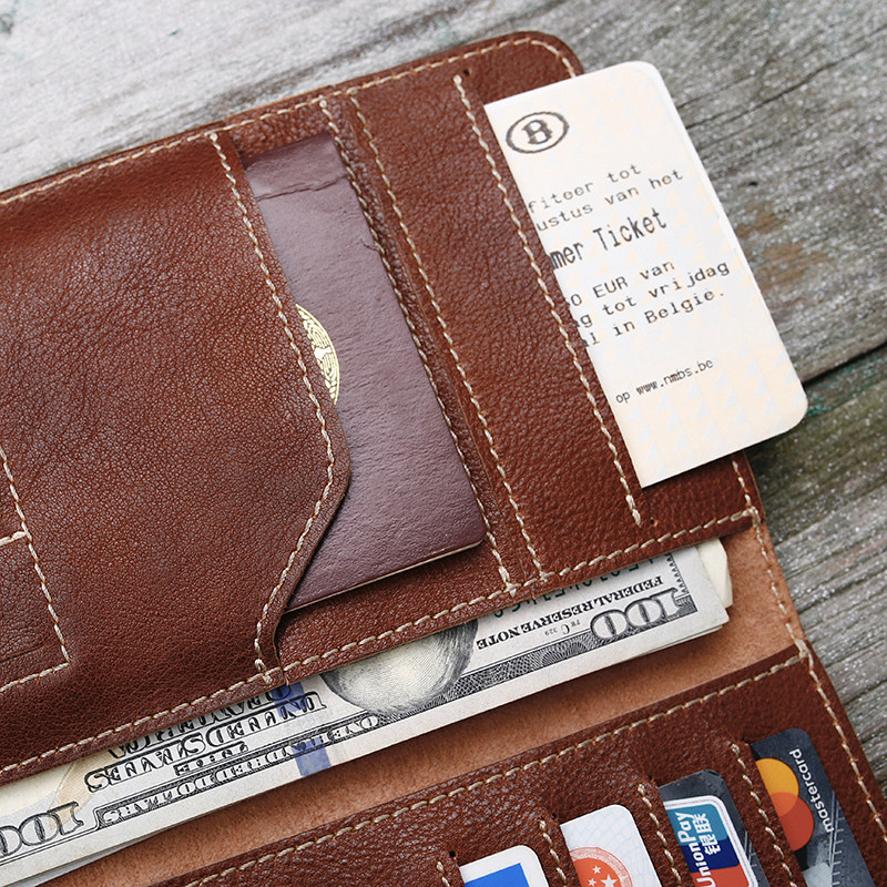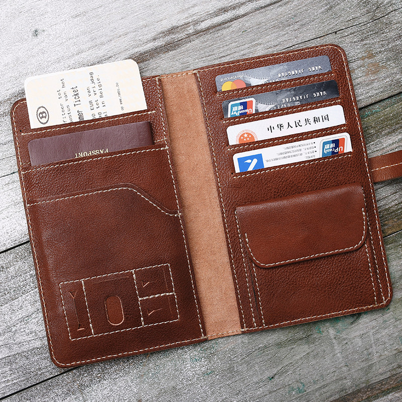 Original Multi-Position Large Capacity Bull Leather Wallet Man Handmade Genuine Leather Business Casual Passport Ticket Document Containing Package