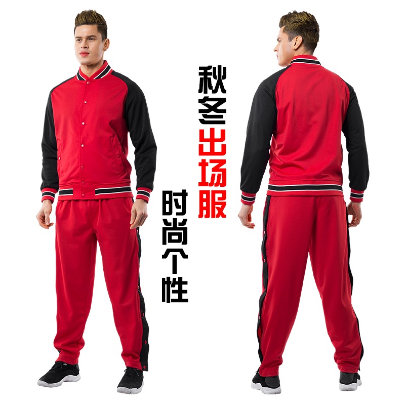 Basketball clothes suit men's custom long sleeves jacket autumn winter sports appearance suits full-open buckle group buy large size training clothes