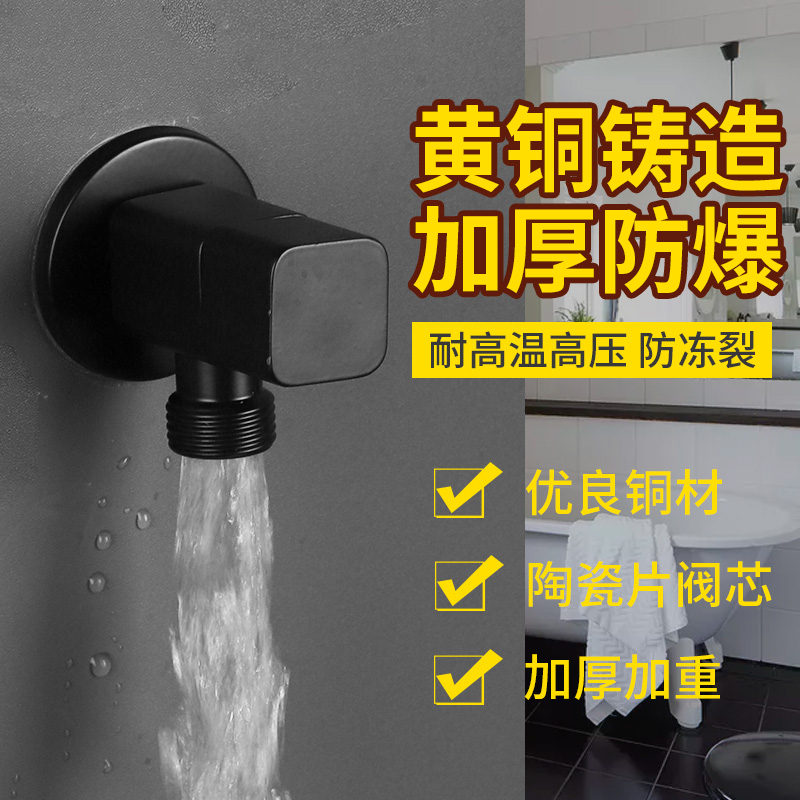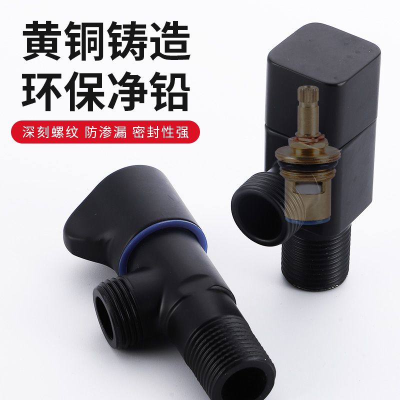 Black full copper thickened hot and cold angle valve toilet face basin Vegetable Basin Water water heater triangular Valve One-in-two out of water-stop valve