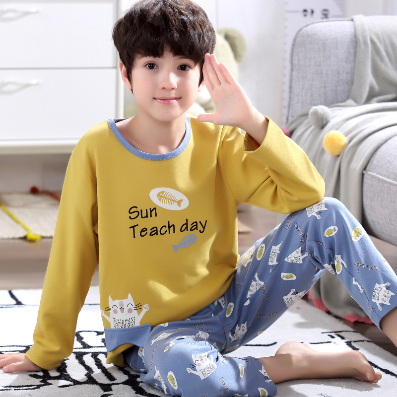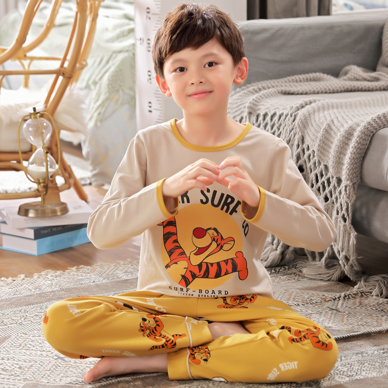 Pure Cotton Children Pyjamas Boy Air Conditioning Suit Thin style Spring and autumn long sleeves CUHK Boy's Home Suit Summer Clouds