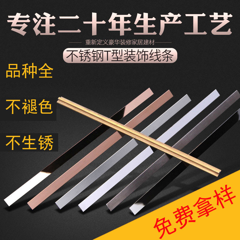 Stainless steel titanium gold solid T - strip integrated T8 decoration line T6 drawing line Rose gold