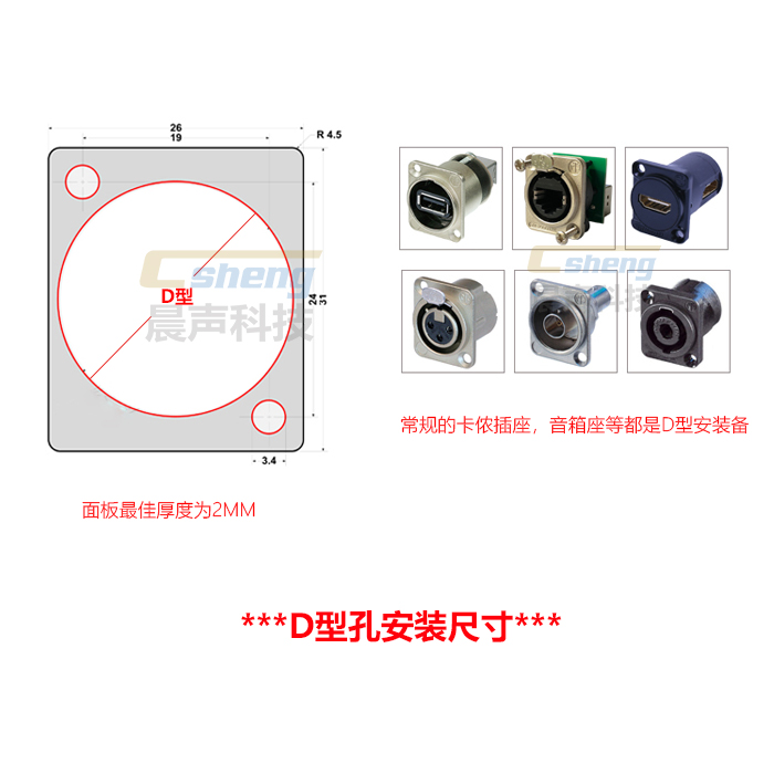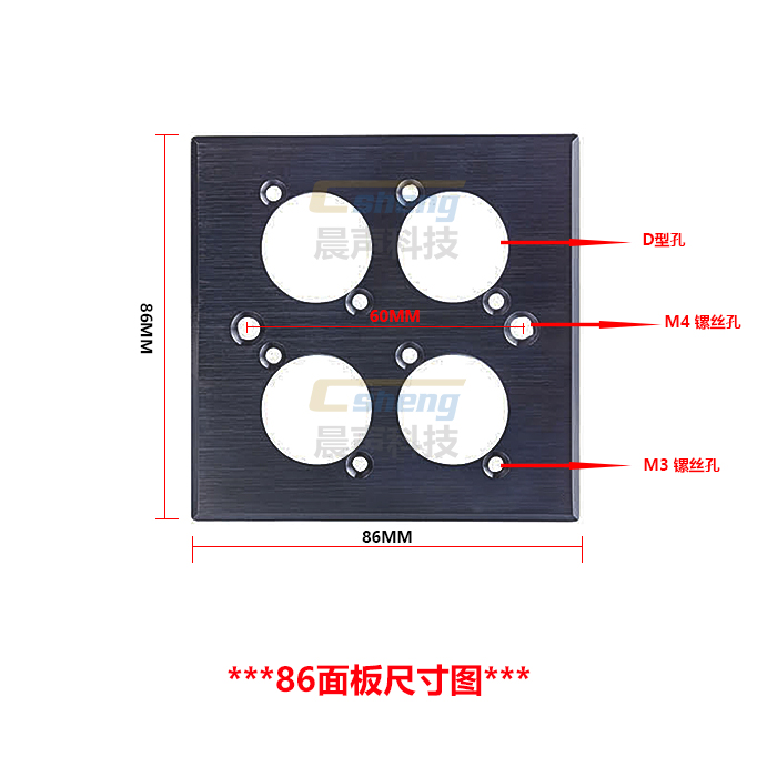 Four-hole aluminum alloy 86 panel 4-position D-type round hole Cannon audio microphone socket Yongsheng information box Wall box