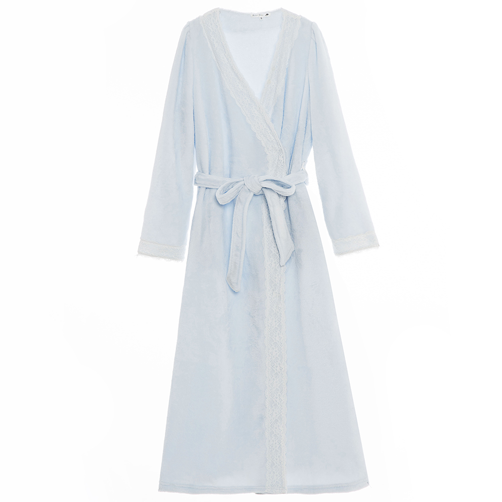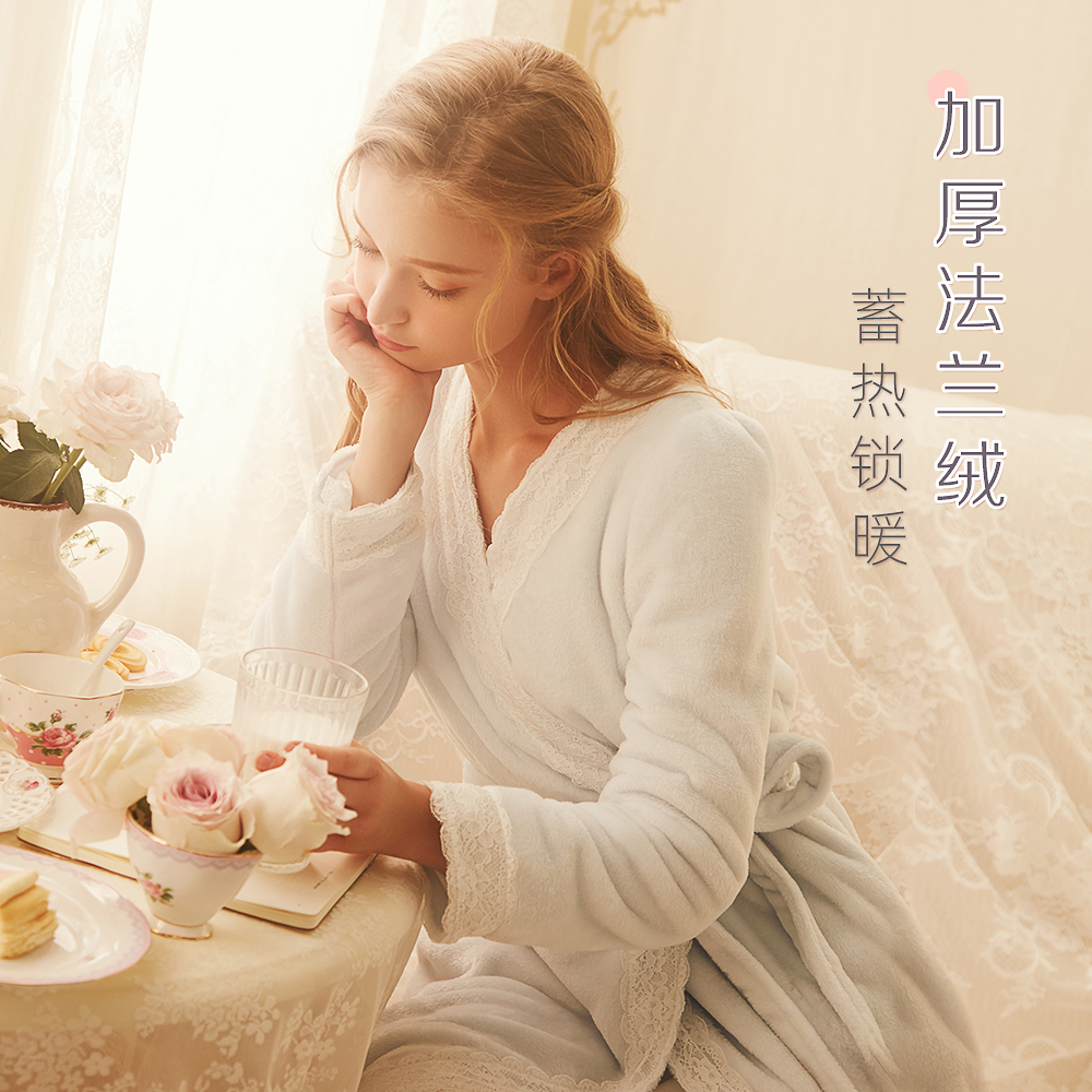 RoseTree Coral Suede Palate Woman Autumn Winter Thickened Warm Flange Suede Retro Pyjamas Lace Long Version Sleeping Robe