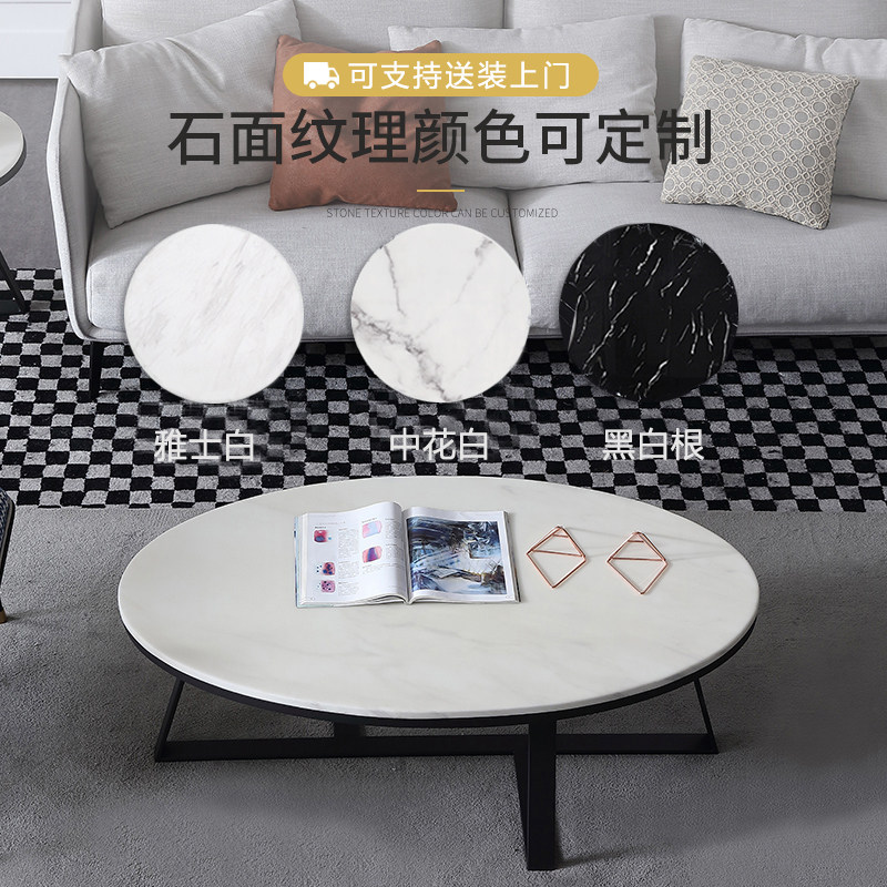 Nordic light luxury white oval marble coffee table tabletop simple modern living room small coffee table 1 meter small apartment