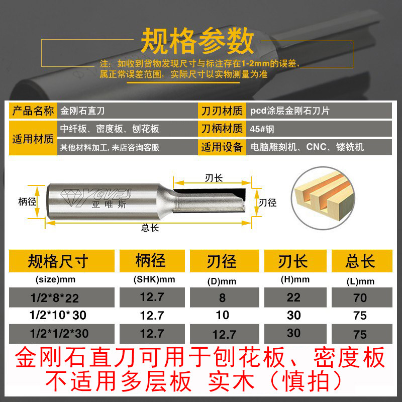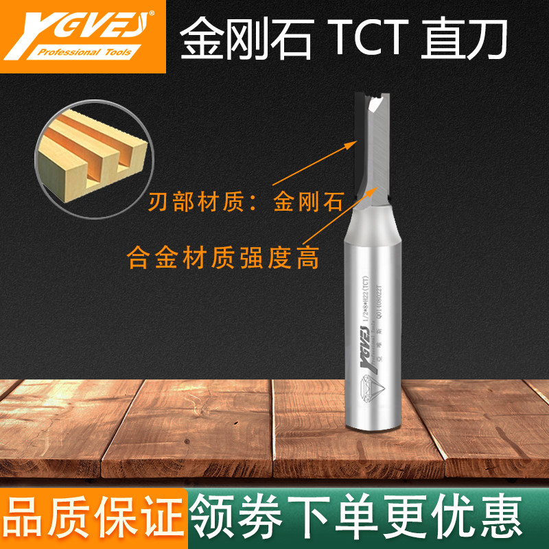 Diamond straight cutter PCD milling cutter CNC opening knife engraving woodworking tool slot double - edged tungsten steel 810