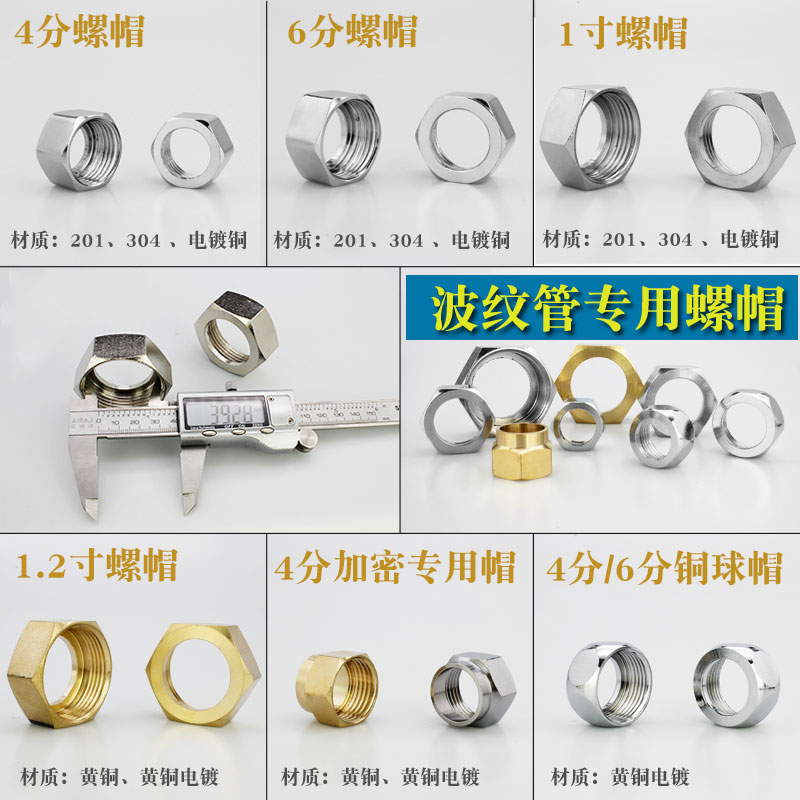 Stainless steel bellows screw cap copper nut 4 points 6 points 1 inch 1 2 inch 1 5 inch water heater water inlet hose special
