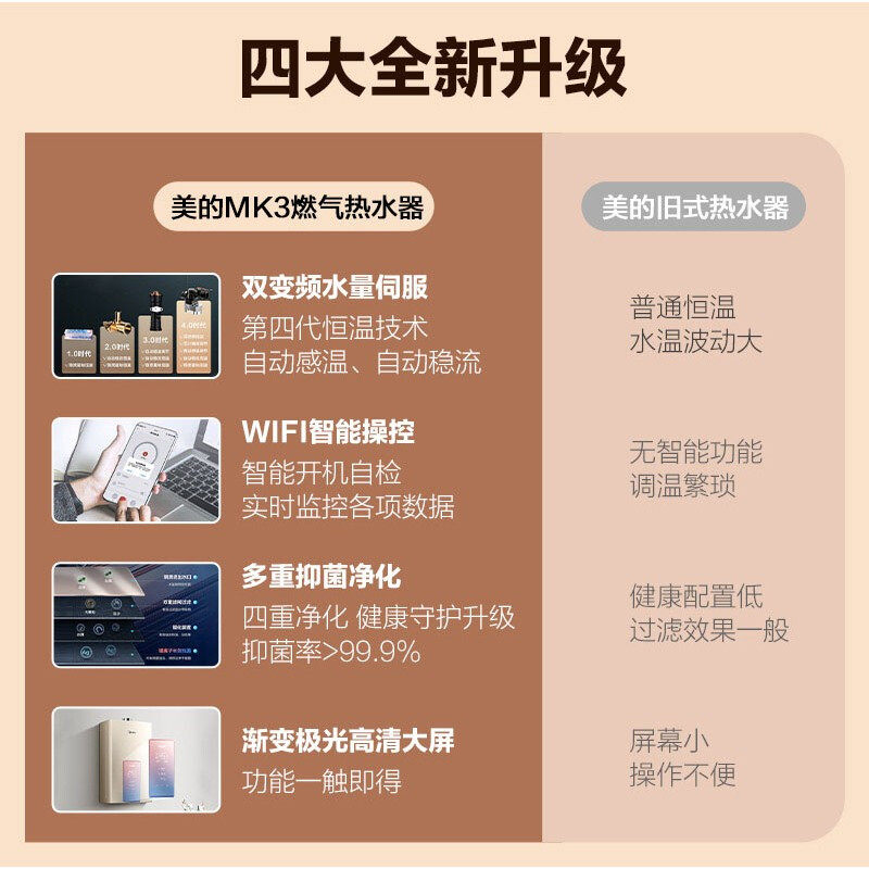 Midea gas water heater 16L household variable frequency water and gas double adjustment constant temperature strong row type gas smart home appliances MK3