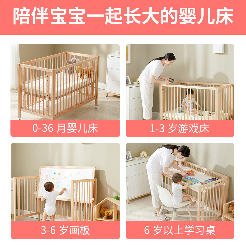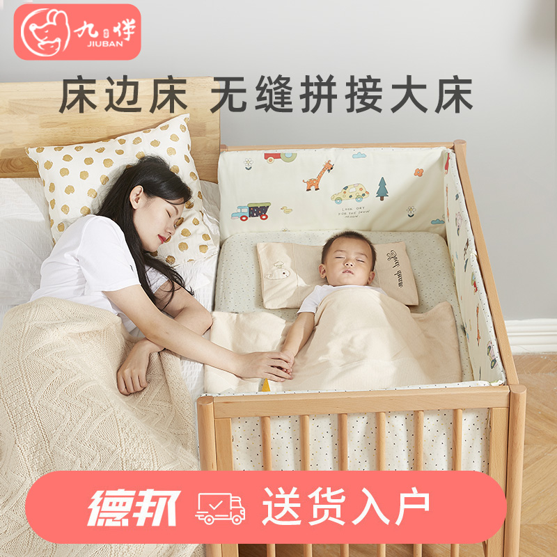 Crib splicing big bed beech wood solid wood newborn baby bed movable child multifunctional bedside bed