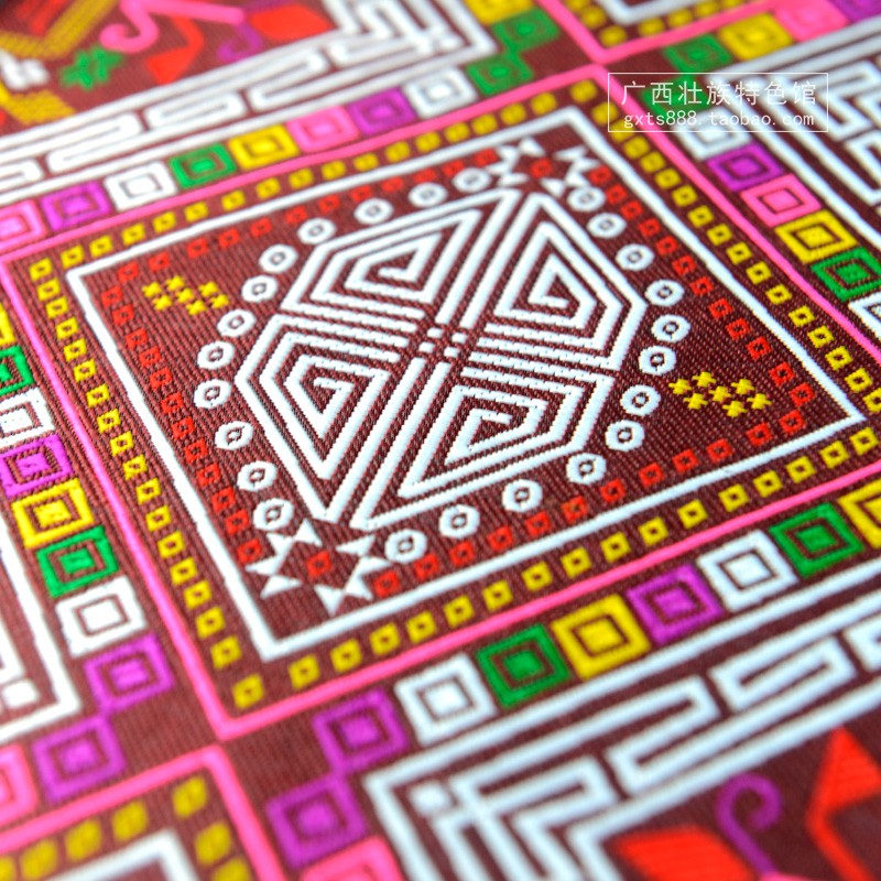 Splendid Guangxi folk customs representative pattern Zhuang traditional totem Zhuang brocade lace fabric Clothing fabric