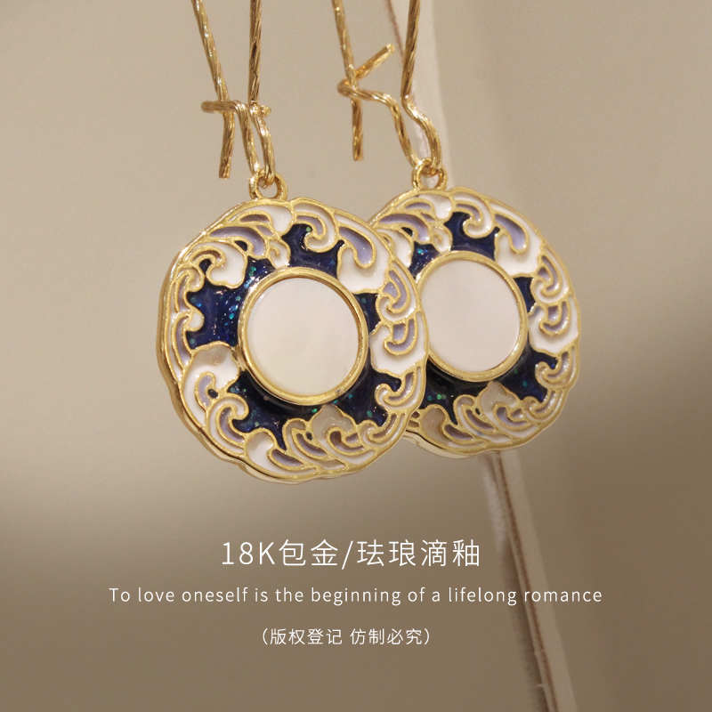 sumni Samini 18K gold-plated enamel color shell earrings women's European-style wave pattern temperament elegant earrings