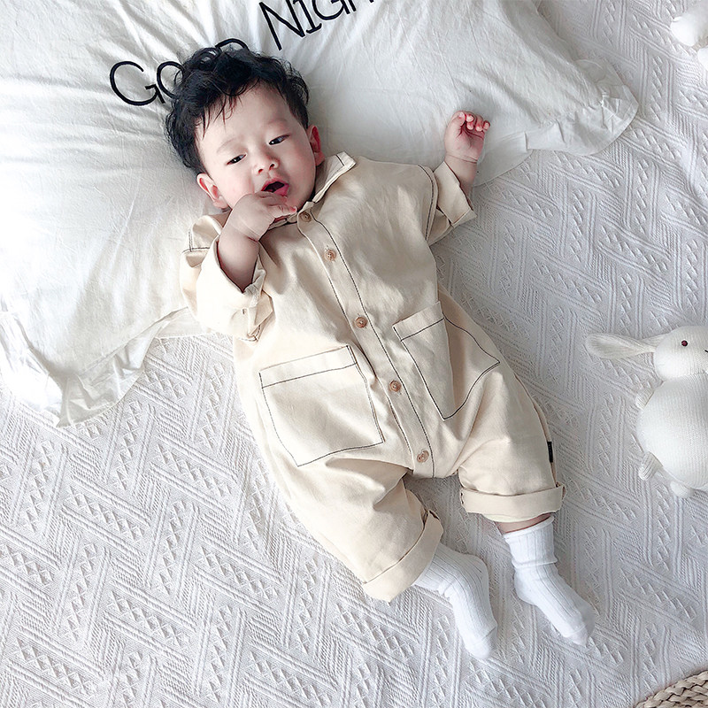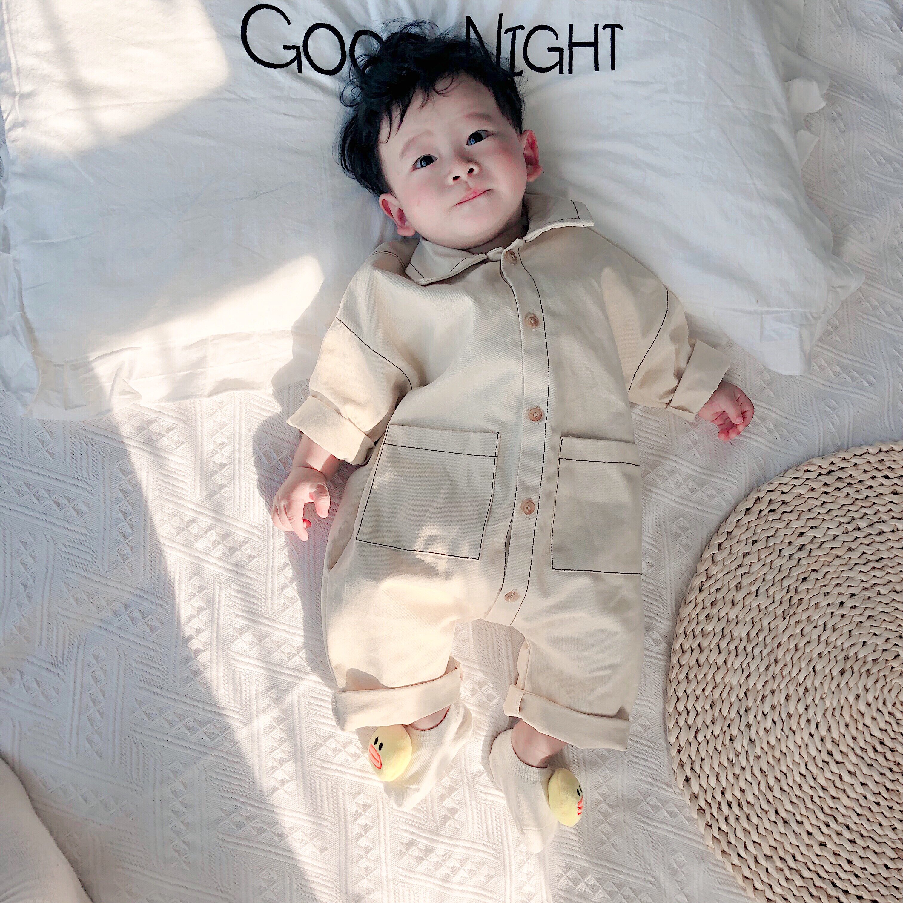 ins baby even body clothes spring autumn clothes baby long sleeves climbing to suit 0-1-3 year old toddler cowboy khaclothes out to suit