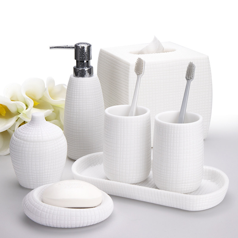 Amojoy European style simple bathroom five-piece set Hotel model room Bathroom wash set Powder room mouthwash cup