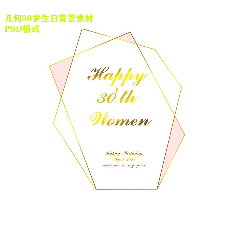 Irregular geometry theme 30-year-old female birthday party welcome background KT board inkjet design material PSD file
