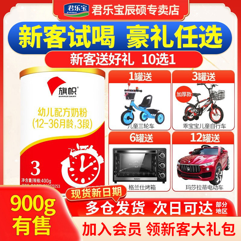Shoot 2 rounds of 900g) Junlebao milk powder banner 3 red cans of toddler milk powder 3 400g flagship store official website