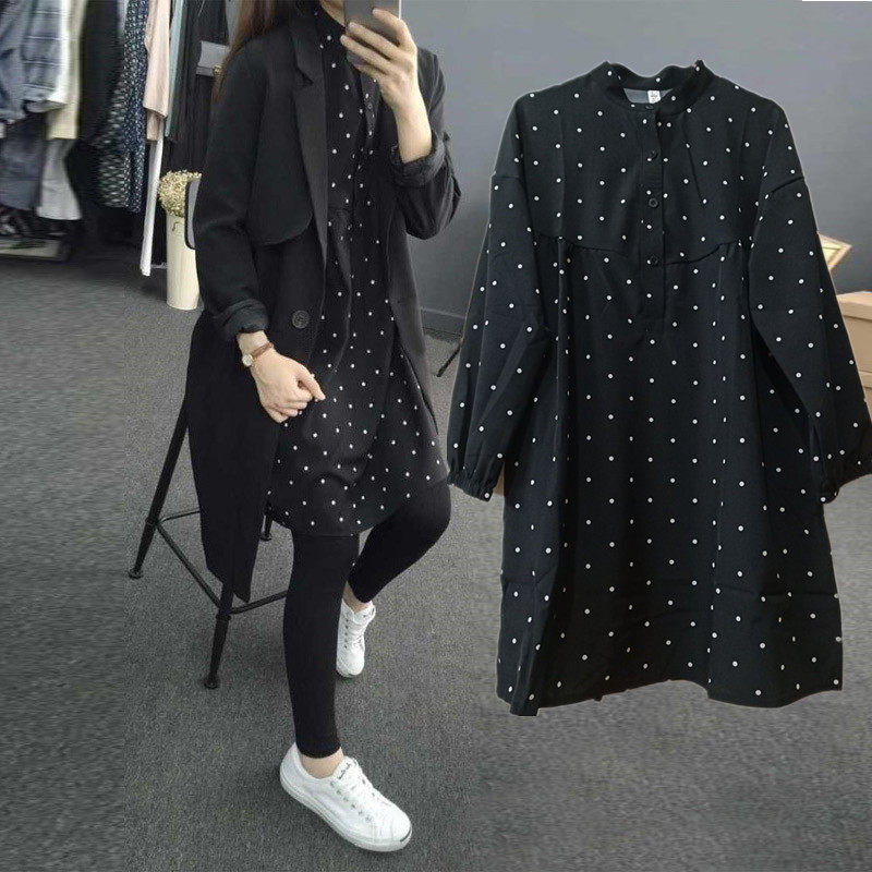 Pregnant women autumn dress suit fashion 2021 large size loose 200 catty medium and long version of the shirt spring and autumn top