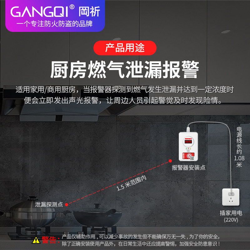 Gangqi Fire certified home kitchen gas alarm gas gas liquefied gas leak detector