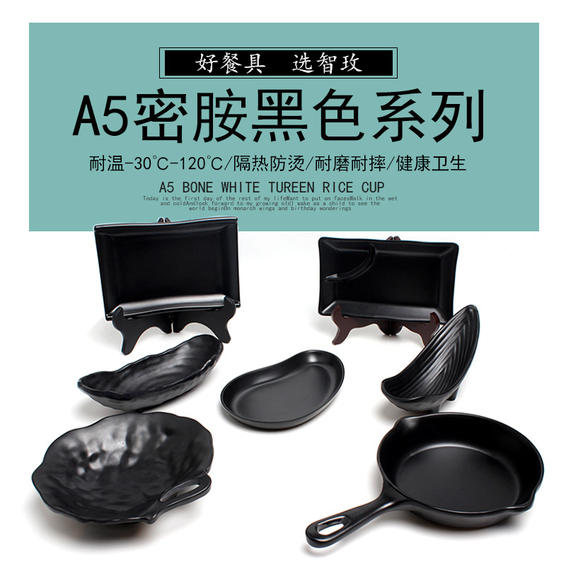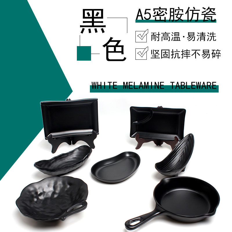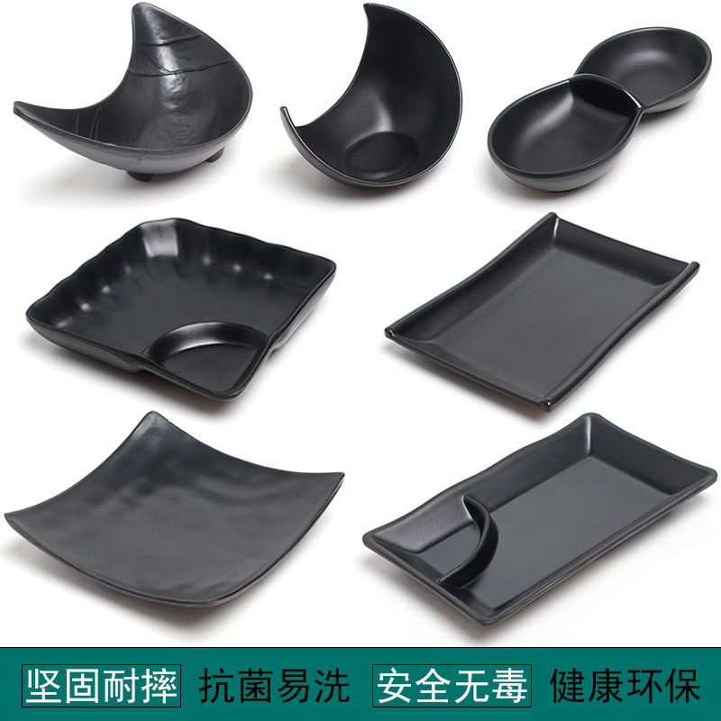 Black snack dish creative tableware plastic commercial KTV bar hot pot barbecue cool dish with dish Japanese