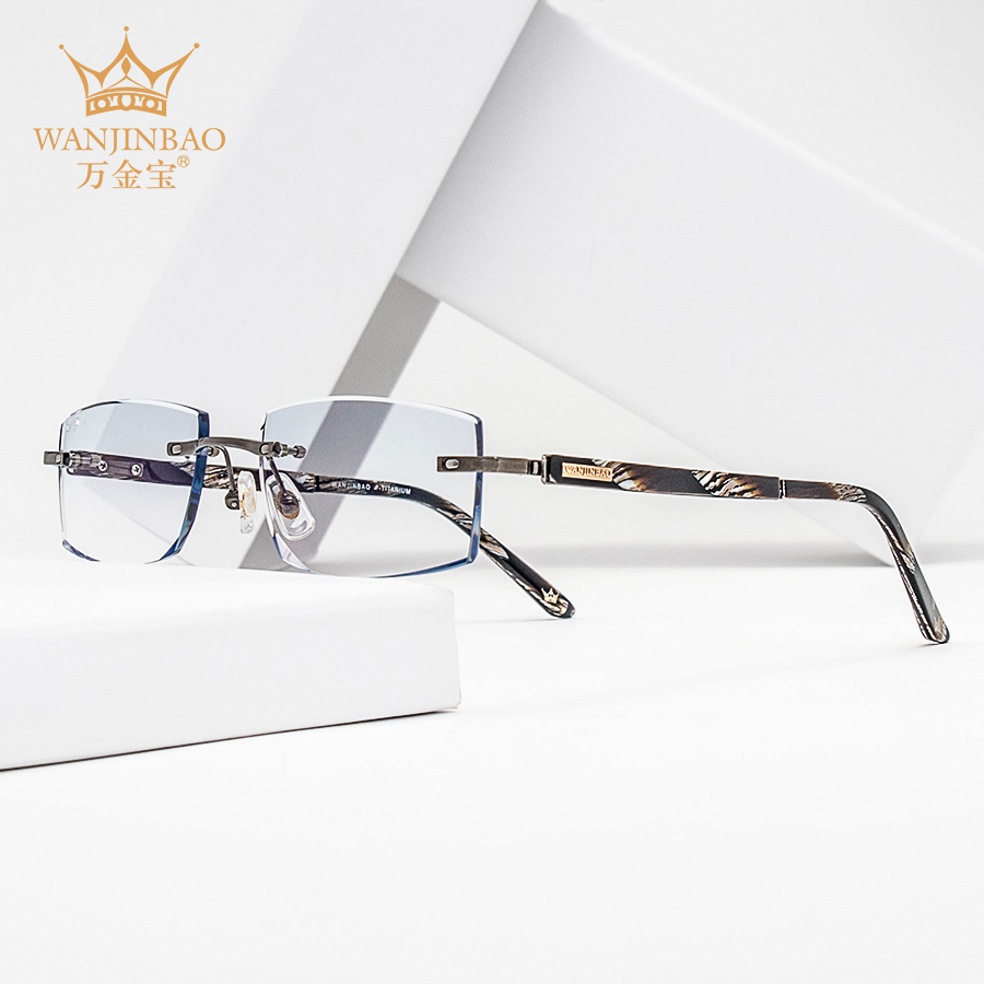 Wanjinbao business casual men diamond cutting myopia glasses fashion pure titanium frame with finished tide
