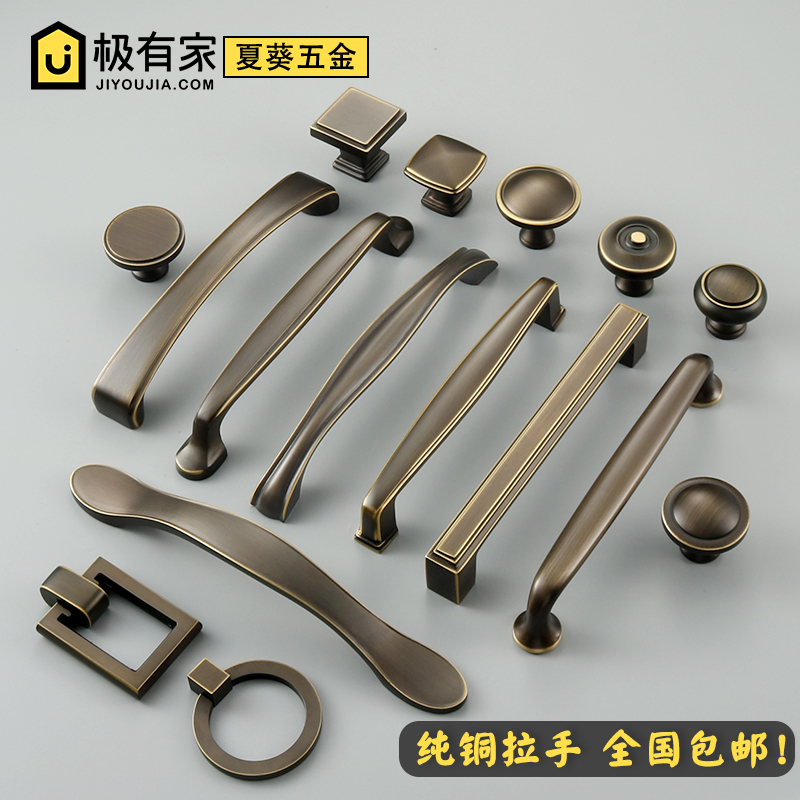 Pure copper wardrobe door handle Antique Chinese overall cabinet Shoe cabinet door handle Vintage American single hole drawer full copper handle