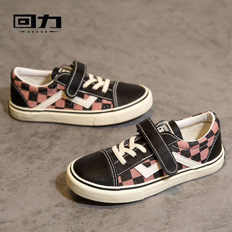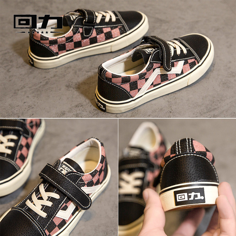 Pull back children's shoes canvas shoes 2022 spring Korean version of the trend of boys and girls shoes light Velcro lattice big children's casual shoes