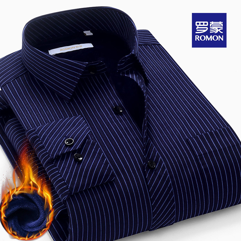 Romon Romon Flannel Thickened Winter Warm Shirt Men's Professional Business Positive Dress Casual White Lining Men's Clothing