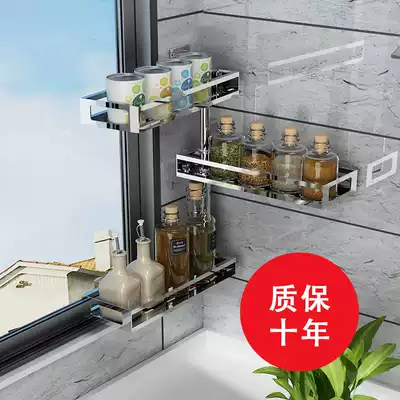 Kitchen 304 stainless steel non-hole rotating seasoning storage rack wall-mounted seasoning tank storage corner shelf
