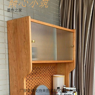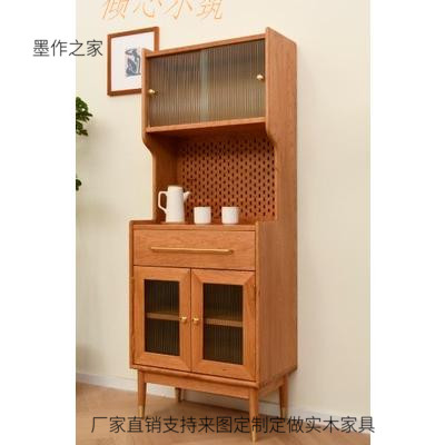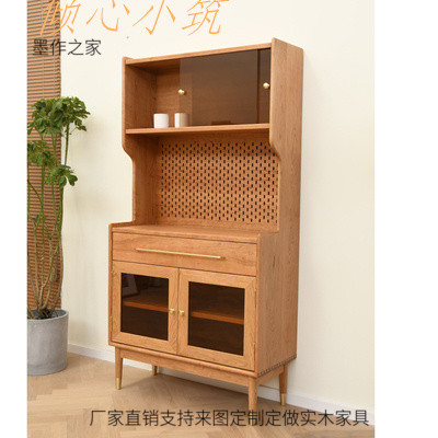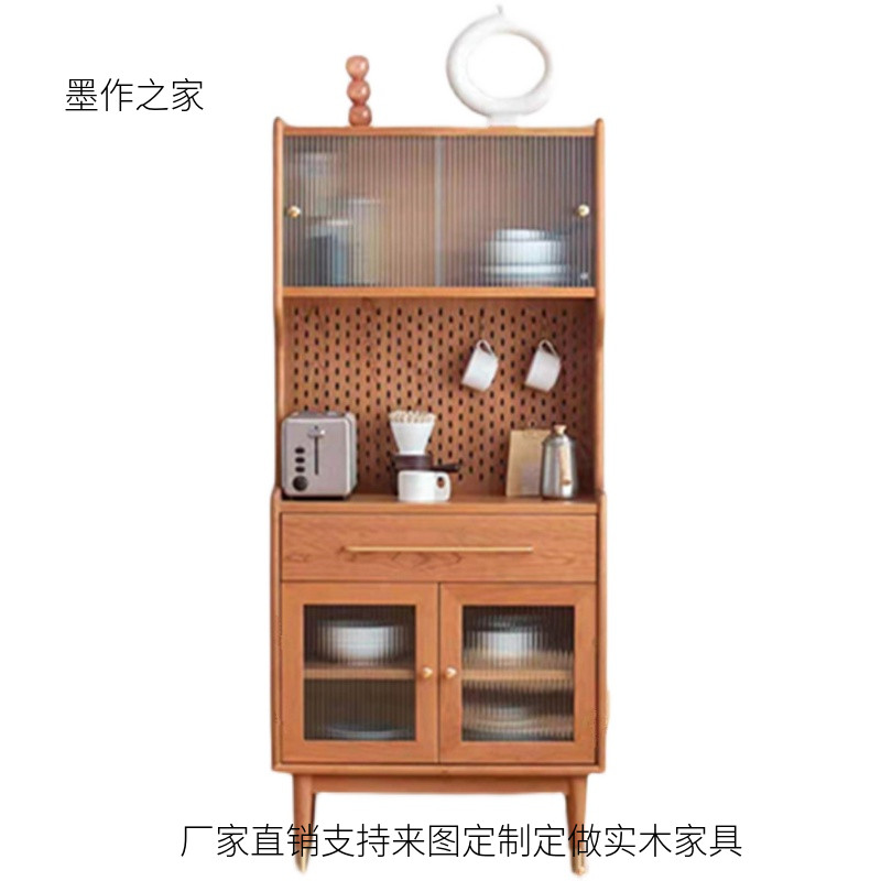 Nordic solid wood sideboard fashion simple hole board high cabinet tea cabinet Japanese-style living room integrated display cabinet cupboard
