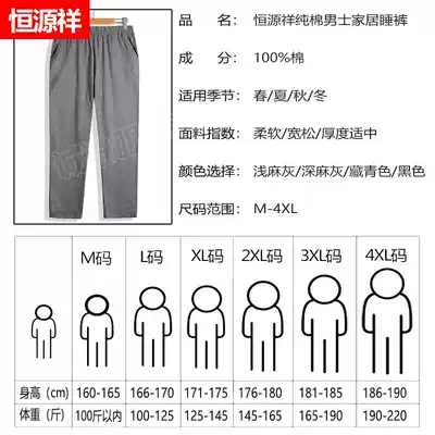 Hengyuanxiang home pants men's pure cotton thin casual pants sports loose home large size pajamas autumn pants