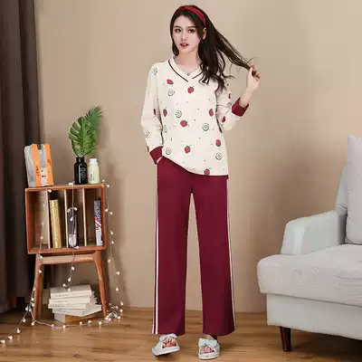 Spring pajamas ladies spring and autumn V collar cotton summer cute strawberry loose home suit suit can be worn outside cotton