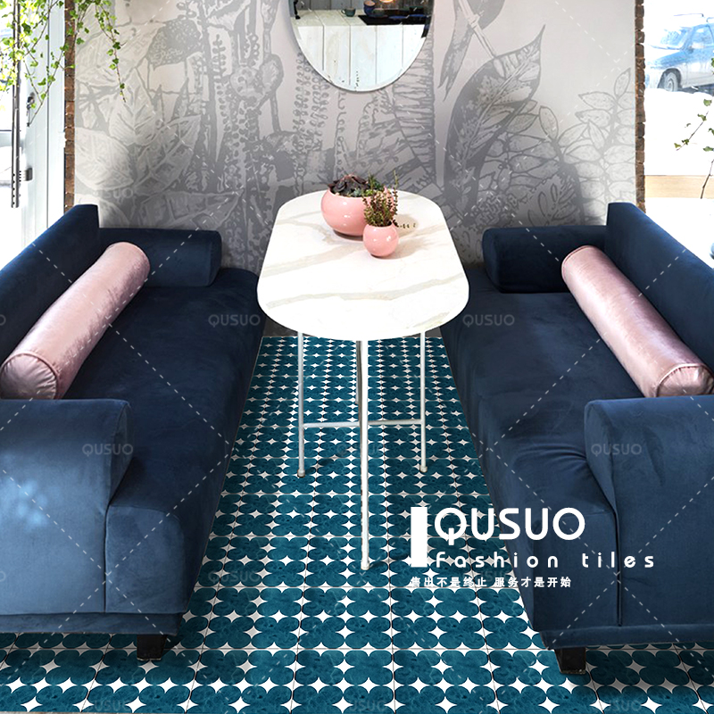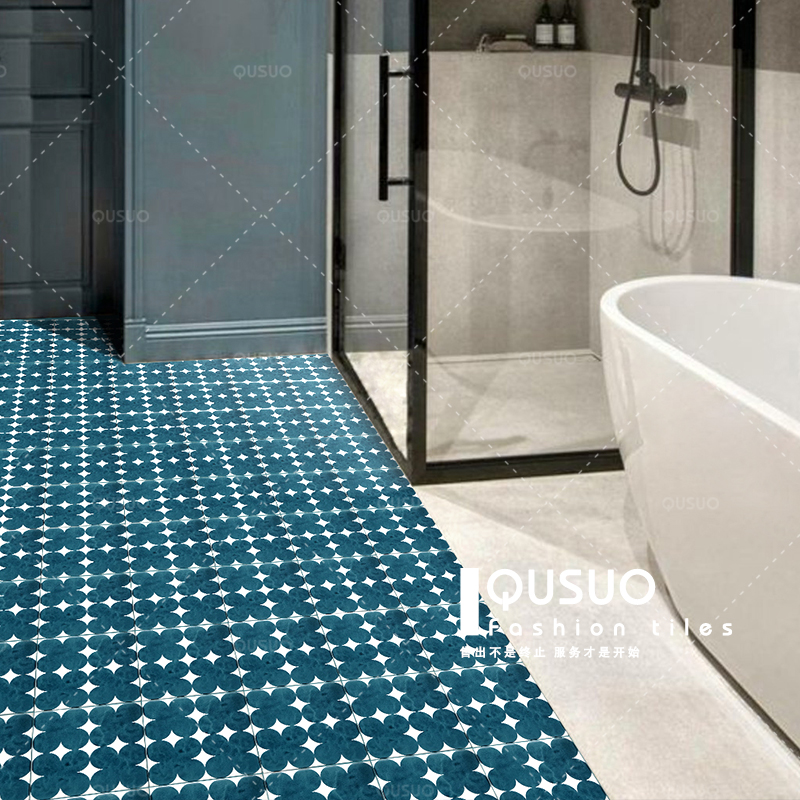 Fun retro ink blue powder room kitchen tiles ins Nordic dining room tiles Bathroom floor tiles