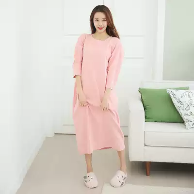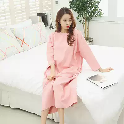 Cute princess cotton long-sleeved night dress women's spring and autumn cotton with chest pad pajamas loose large size home clothes winter