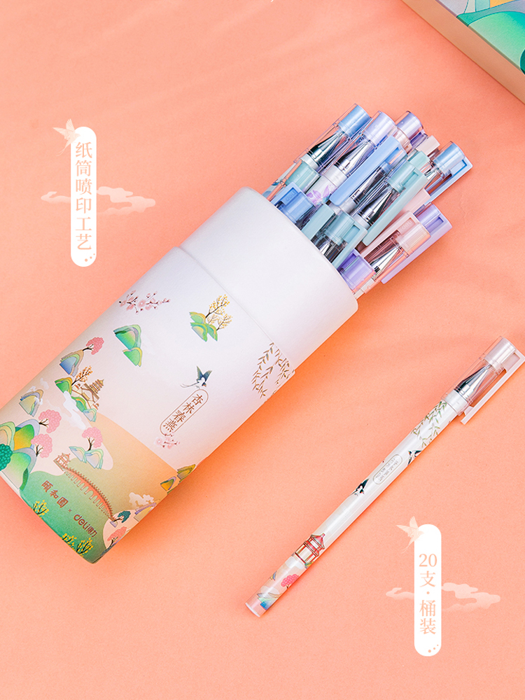 (National Wind Award)Deli gel pen Summer Palace series Student gel pen 0 5 Full needle tube small fresh
