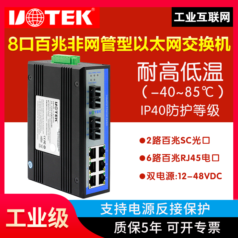Industrial Network switch 2 Optical 6 electric 100M Fiber optic transceiver 1 Optical 1 Electric 1 Optical 2 Electric 2 Optical 4 electric Industrial Ethernet switch Rail mount Yutai UT-60-D6T2SC