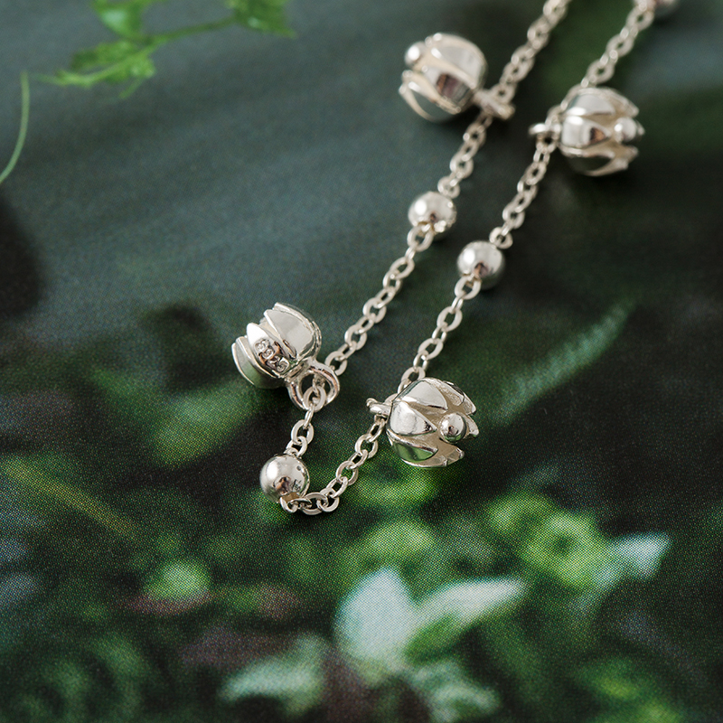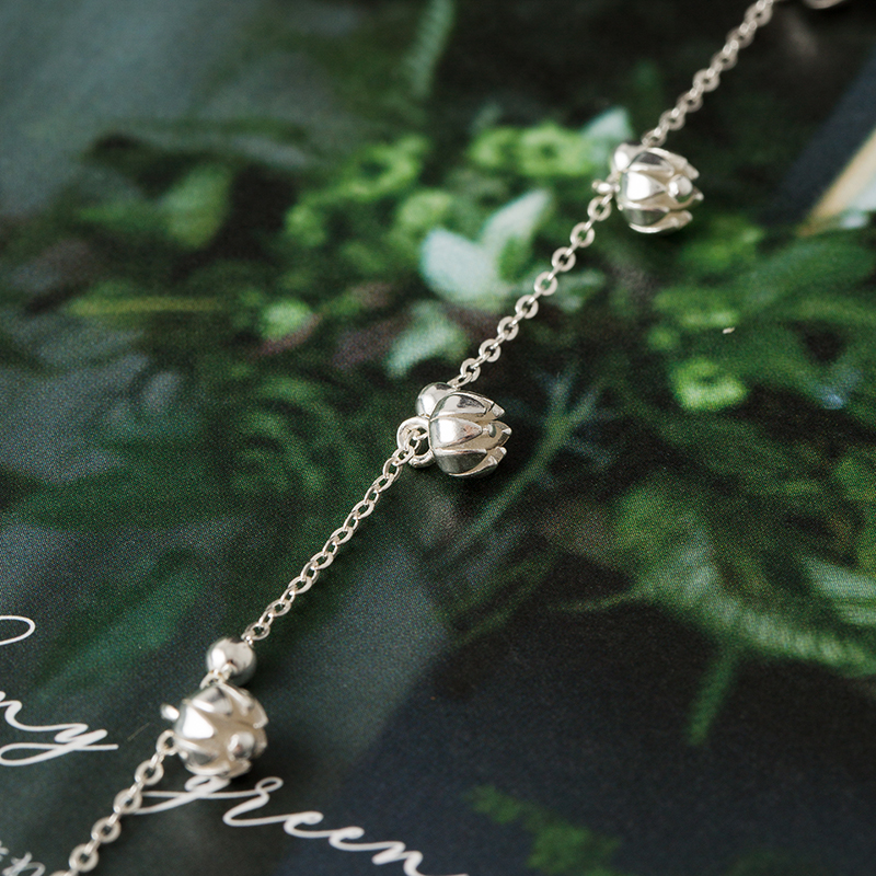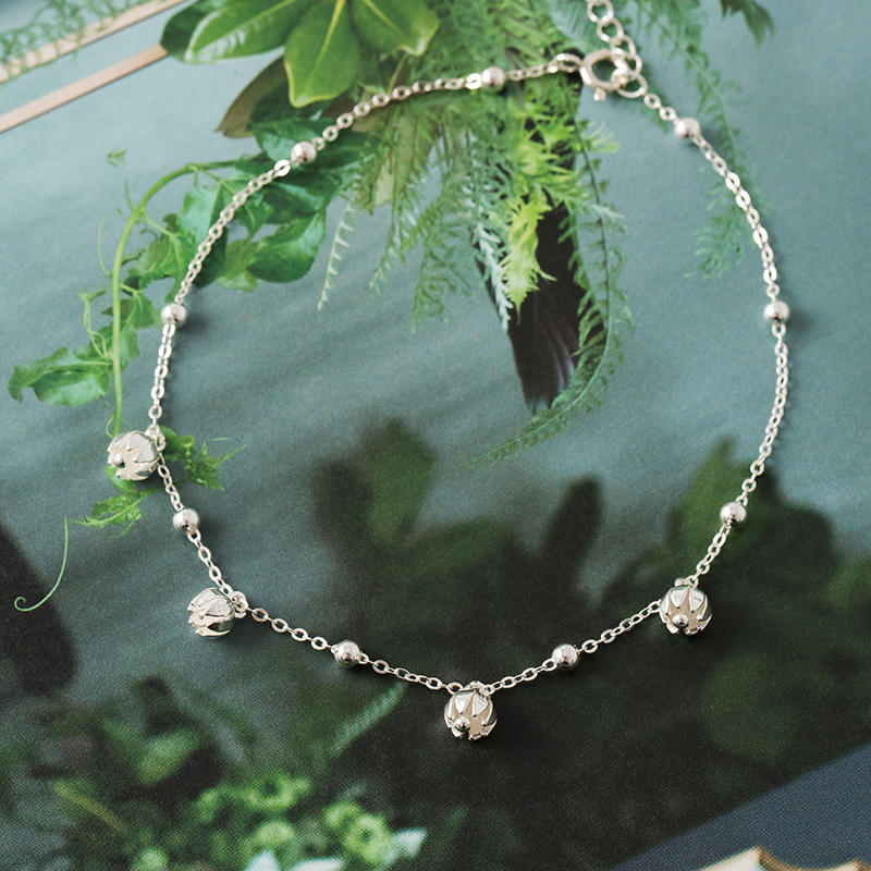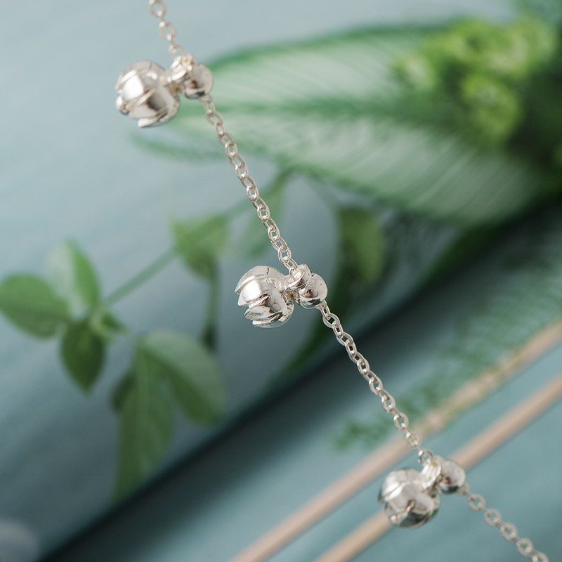 Silver Bell Yaoyao 925 Sterling Silver Small Flower Bud Plain Silver Smart Anklet