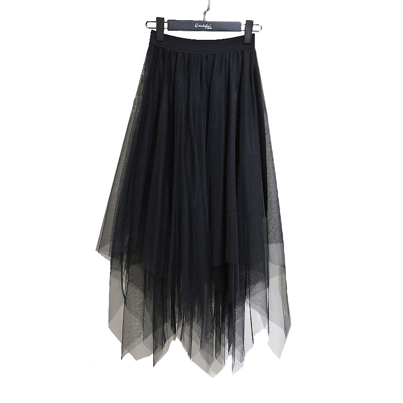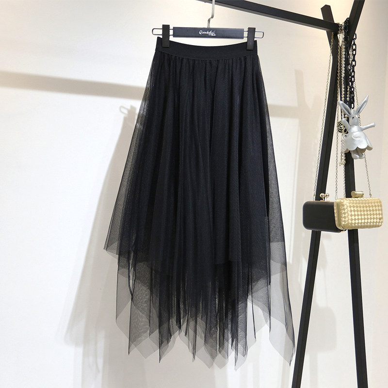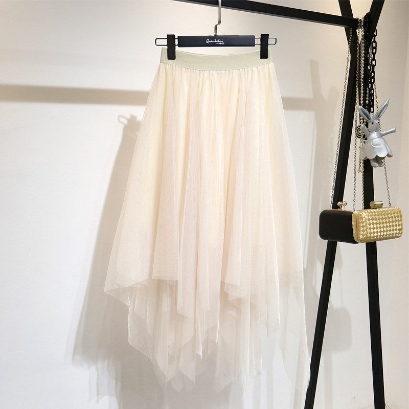 Special cabinet 2022 spring and summer new web yarn half body fairy yarn dress irregular Korean version High waist medium long version Ins long dress