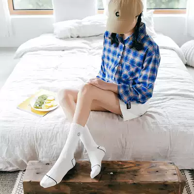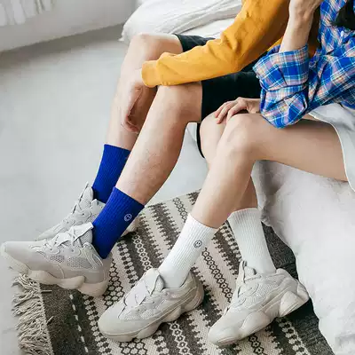 Smiley face couple black socks women mid-tube socks tide ins Korea Spring and Autumn white stockings cotton stockings men